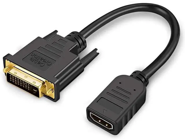 Connect computers with a DVI or HDMI interface to monitors or HDTVs with DVI or HDMI ports. It works in both directions, regardless of which of the connected devices has the DVI port