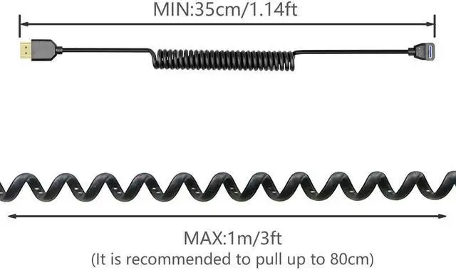 90 Degrees 8K UHD HDMI to Mini HDMI Coiled Cables