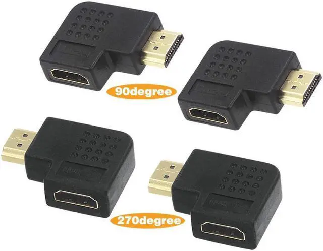 HDMI Right Angle Port Saver Adapter (Male to Female) -Flat 90 Degree And 270 Degree, 4-Pack