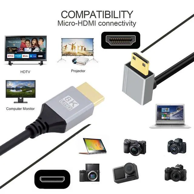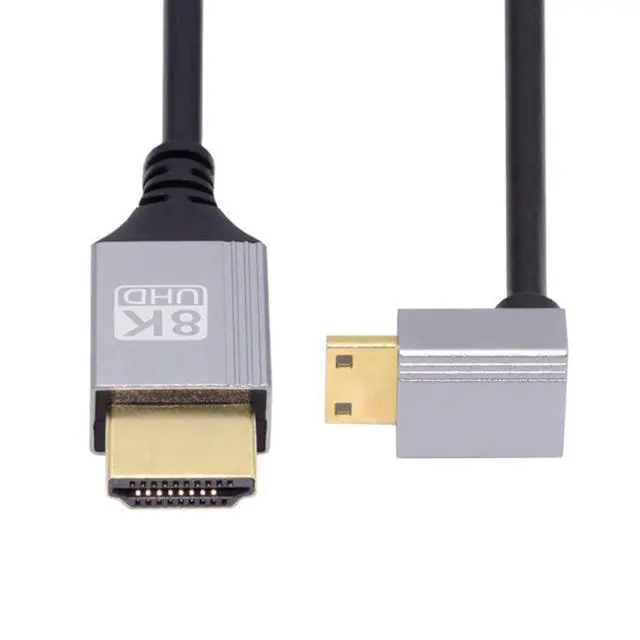 Vszerda HDMI 2.1 Cable,HDMI Male to Mini HDMI Male 90 Degree Down Angled 8K@60Hz 4K@120Hz 48Gbps Ultra High-Speed Gold-Plated Cable 1.64FT/0.5M for TV, Monitor, Computer