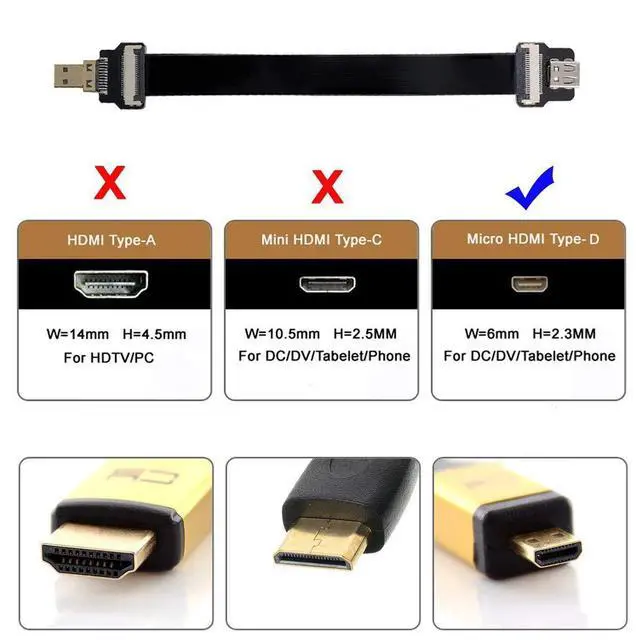 Vszerda CY Micro HDMI to Micro HDMI Cable CYFPV Micro HDMI Male to Micro HDMI Female Extension FPC Flat Cable 1080P for FPV HDTV Multicopter Aerial Photography