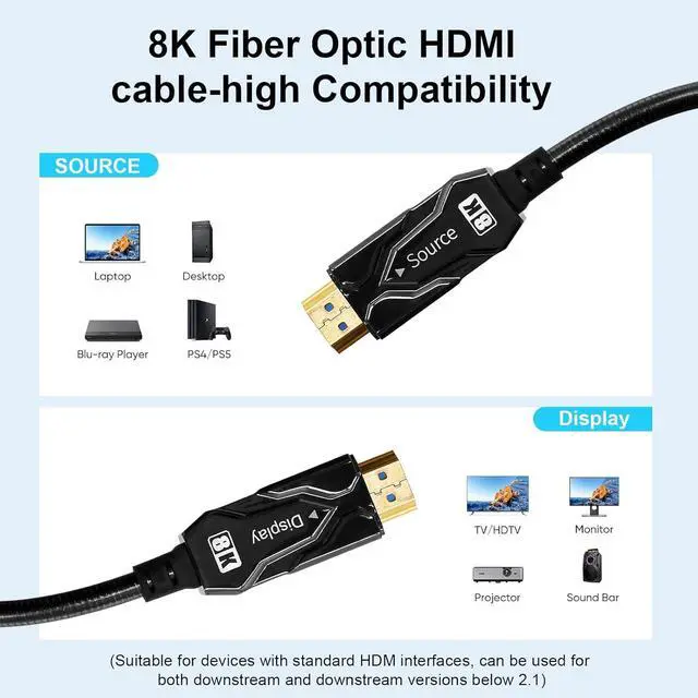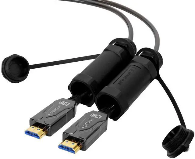 Armored HDMI cable eARC features crush-resistant stainless steel armored tube, metal HDMI headshell for outdoor use resists crushing, cutting and abrasions, ideal for areas where extra protection is needed; Both HDMI connectors are protected by a molded, dust-resistant, IP68-rated watertight hood and caps.