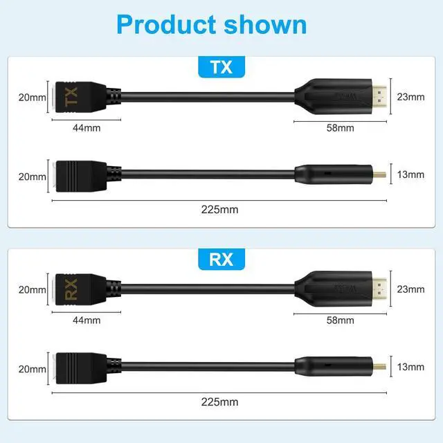 7.TX/RX cable length 22cm,If 22cm cannot meet your needs,please buy female extend .