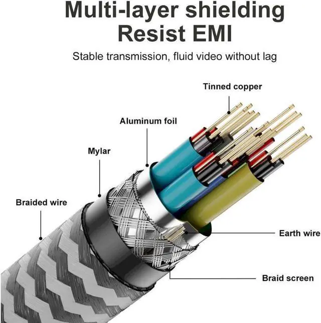 Video Output: This Cable supports Newest 8K Resolution@60Hz and 4K Resolution@120Hz, backwards compatible with 4K and 1080P, so that you can enjoy big screens in ultimate visual and smooth experiences.
