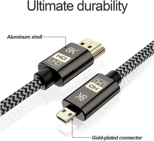 Compability: The Micro HDMI and HDMI Connector with Aluminum Shell and Gold-plated, The cable with Nylon Braided for High strength and Durability, This cable can be compatible with most of digital cameras, camcorders, tablets, or other micro HDMI-enabled devices.