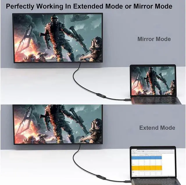 Product Description: 1 Convenient cable directly connects a DisplayPort (DP, DP++, DisplayPort++) equipped computer to an HDTV, monitor, or projector with HDMI input. 2 Transmits high-definition audio and video from your computer to an HDTV for video streaming or gaming 3 Connect and configure your monitor for an Extended Desktop or Mirrored Displays. 4 Supports video resolutions up to 1920x1200 / 1080P (Full HD) and flawless audio pass-thru for uncompressed digital 7.1, 5.1 or 2 channels.