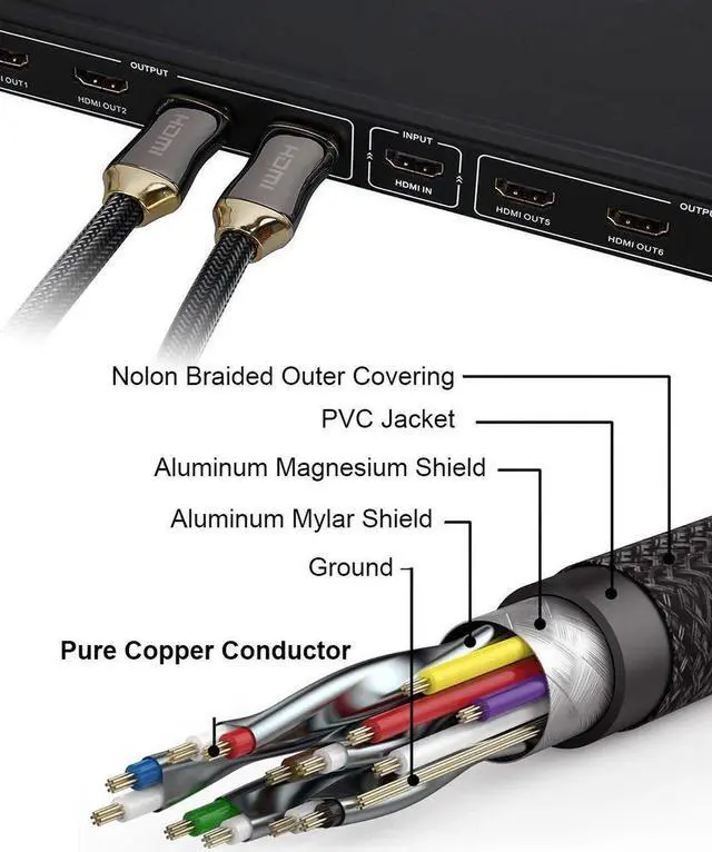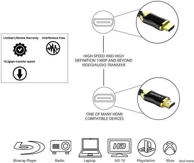 1080p High Deffinition HDMI cable uses High-purity 30AWG Oxygen-Free Copper and Full-length woven nylon for extreme durability and transfer effectively.