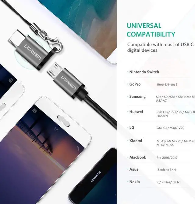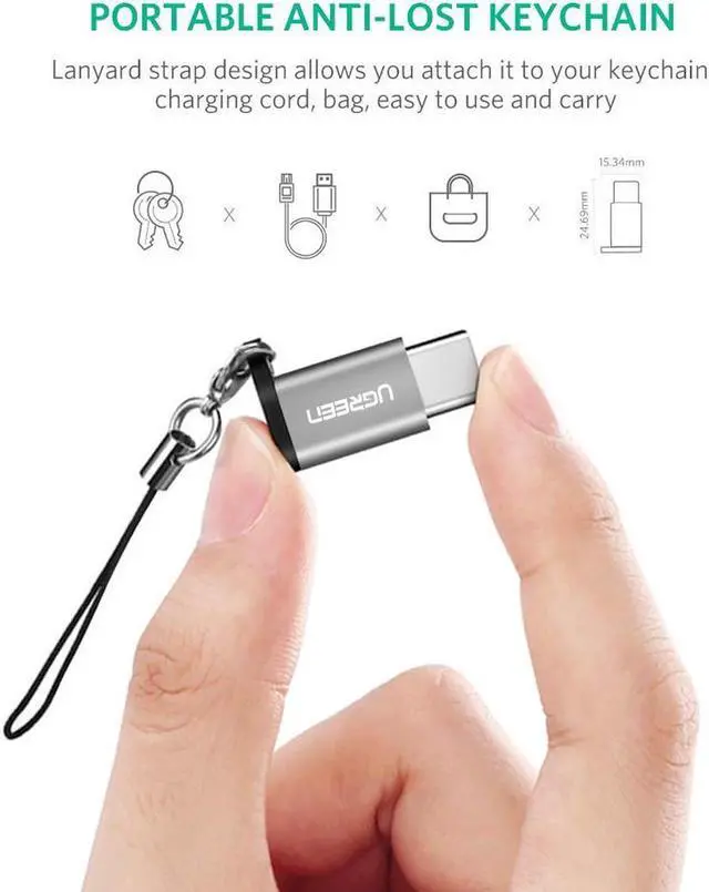 Micro USB to USB C Adapter with Keychain Compatible Samsung Galaxy S8 New MacBook Pro Pixel XL Nexus 5X 6P, Sony XZ, LG V20 G5 G6