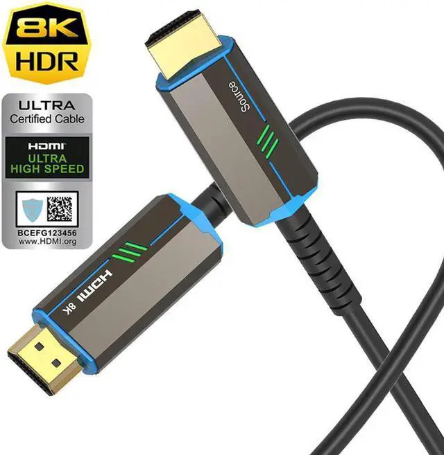 • 3. The transmission rate of this HDMI 2.1 fiber cable is higher than common HDMI copper cable, traditional HDMI copper cable can not transfer 4K@60Hz for long distance