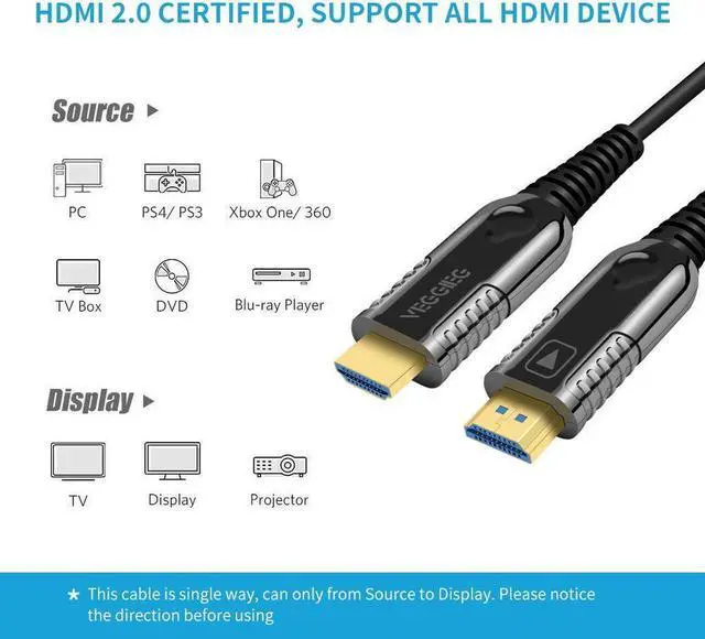 Wide Compatibility: VEGGIEG HDMI fiber optic cable allows you to share an internet connection among multiple devices without the need for a separate Ethernet cable, easily connects your Apple TV or HDTV to the PC, Laptop, PlayStation 4 Pro, PS4/PS3, Xbox One, Xbox 360, Nintendo Switch, Blu-ray Player, and more HDMI sources.