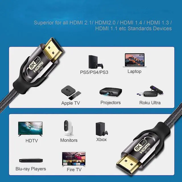 8K HDMI 2.1 Cable, 48Gbps Ultra HD Lead High-Speed Cord, Supports 8K@60Hz, 4K@120Hz, eARC HDR10, HDCP 2.2/2.3 Dolby, 3D, VRR, Compatible with Fire TV/Roku TV/PS5/Xbox/Nintendo Switch and More (3.3 ft)