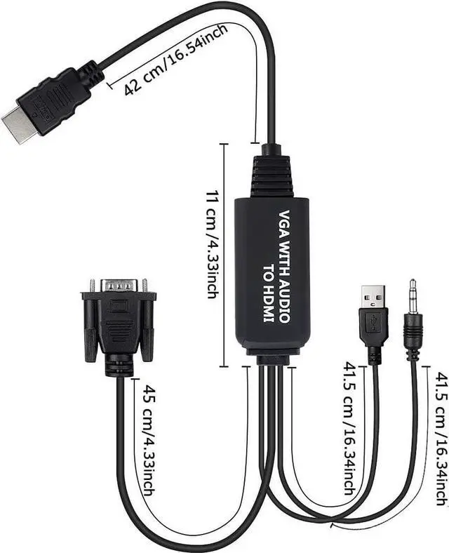 Audio: This VGA to HDMI Adapter 4ft cable offers you a convenient way to connect PC, Notebook, Desktop computer that with VGA output(D-Sub, HD 15 pin) to displays with HDMI Input such as projector, monitor, HDTV.
