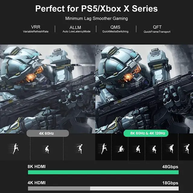Ultra High Speed 48gbps Supports the full range of uncompressed HDMI 2.1 Specification features including 8K video with Dynamic HDR, Enables up to 48Gbps bandwidth