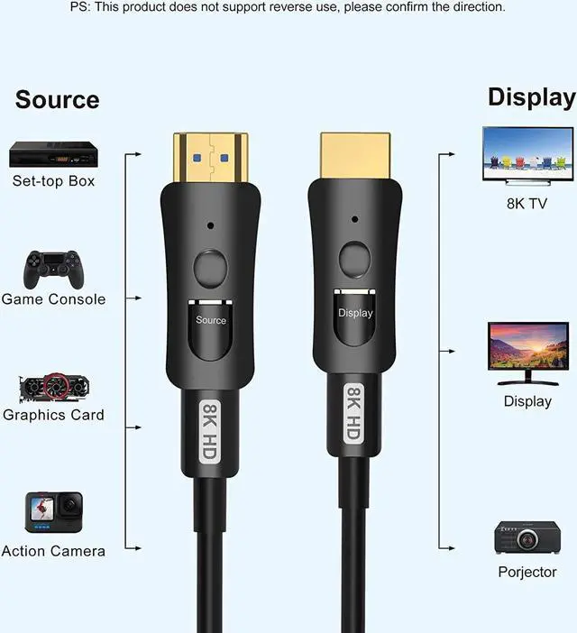 8K HDMI 2.1 cable support 8K@60Hz, 4K@120Hz/60Hz, 2K 144Hz, suitable for all devices with HDMI 2.1 standard, backward compatible with previous HDMI 2.0, 1.4, 1.3, 1.2 and 1.1. With 48Gbps bandwidth for latest features, enjoy the ultra High definition ultimate experience of the big screen.