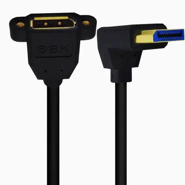 Right Angle 1.4V ersion 8K@60Hz DP DisplayPort Extension Panel Mount Cable-DisplayPort to DisplayPort - Male to Female 0.3 m;