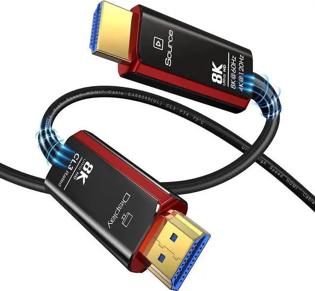 Optic Material: This is an 8K Fiber Optic Hdmi 2.1 Cable that supports 8K@60Hz, 4K@120Hz HD display. Our HDMI 2.1 Cable is made of fiber optic material than ordinary copper HDMI cable is more resistant to electromagnetic interference, signal transmission is more powerful and durable, no signal booster, no longer afraid of signal loss. Long Fiber Optic Hdmi Cable 100ft even farther home wiring, company meetings, will not let your clarity and smoothness is reduced.