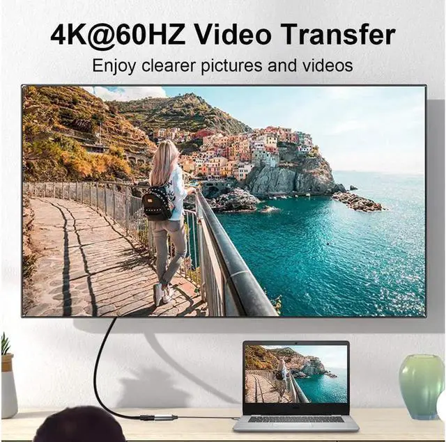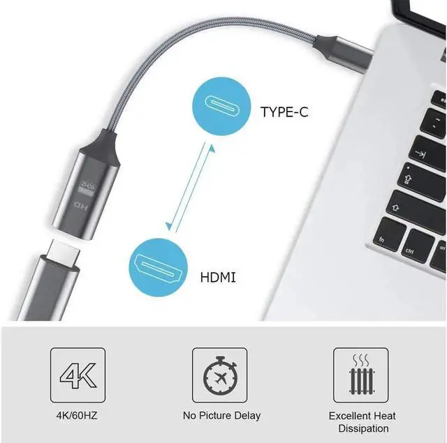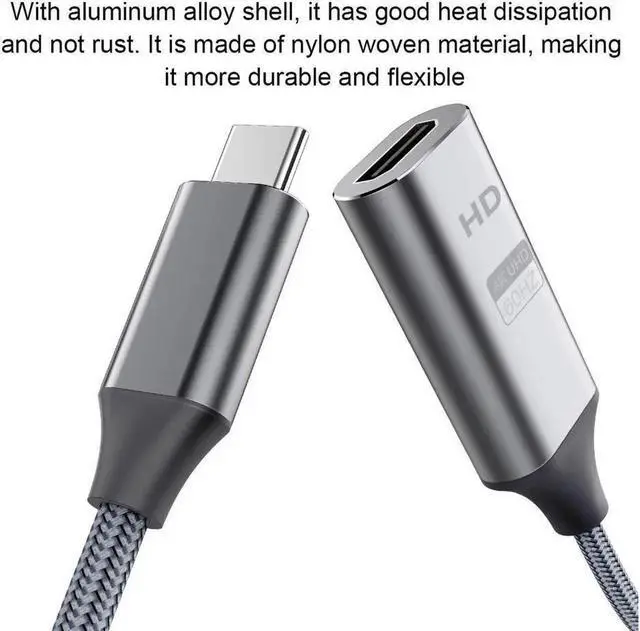 The Type-C to HDMI cord is 0.65 ft ( 0.2 m) long and weighs 45g. It supports 4K 60Hz HD video transmission and provides you with HD picture quality. Nylon braided rope and aluminum alloy housing make it tough and insulated.
