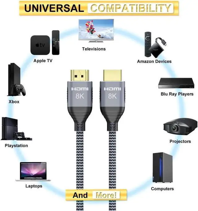 1: Standard HDMI-A Type, HDMI Real 8K Ultra HD Signal Transmission, No Signal Loss, Ultra HD Visual Experience