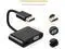It can only transfer signal from DisplayPort source to HDMI or VGA monitors/ displays/ projectors. If both of theoutputs are connected, then only one output can receive the input signal, HDMI output is prior to VGA output.