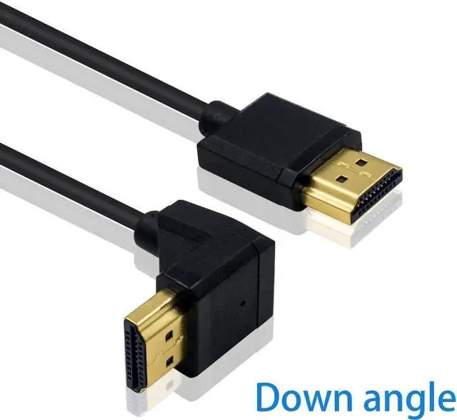 Downards angled HDMI cable ideal for home theater installation, behind flat screen televisions or where space is limited.