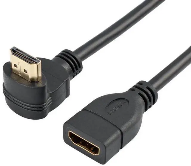 HDMI Extension Cable High Speed 90-Degree Angle HDMI Male to Female Extension Wire Cord HDMI Extender - Gold Plated Plugs, Black (0.5FT)