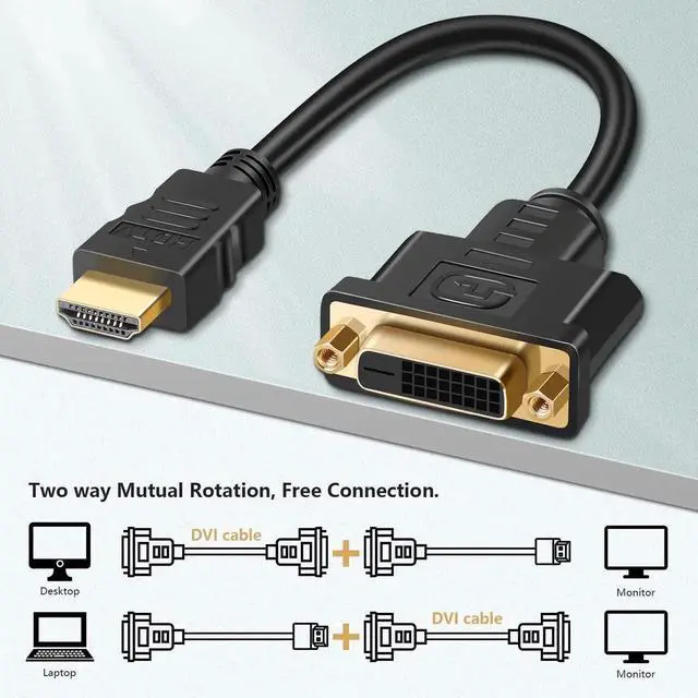 Bi-Directional HDMI to DVI Adapter Cable: Our HDMI to DVI-D Converter Cable connects your HDMI laptop to a DVI monitor, featuring one HDMI male connector and one DVI-D female connector, which enables a bi-directional connection between HDMI-capable devices and DVI-D capable devices to overcome compatibility issues.