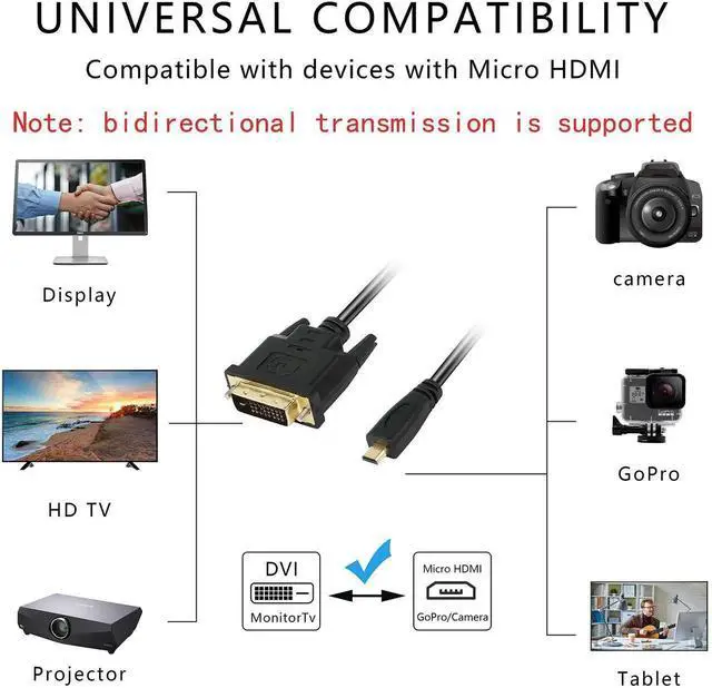 1.This micro HDMI to DVI cable is perfect for connecting a mobile phonem with micro HDMI output to HDTV, monitor, or projector with DVI input.
