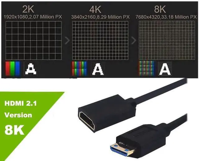 - If Mini HDMI/HDMI 2.1 cable wants to achieve 8K transmission. You need to make sure that your TV, graphics card or other equipment matches all HDMI 2.1 features. For example, if your device (TV) is HDMI2.0 version, it can only output 4k resolution and 60/30HZ refresh rate.