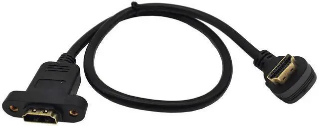 AOMOPROING Panel Mount HDMI Extension Cable 1.6Ft/50CM High Speed HDMI 2.0 Female to Male Cable with Screw Nut Support 4K Resolution for Blu Ray Player, 3D TV, Roku, Xbox360(Up-Angled)