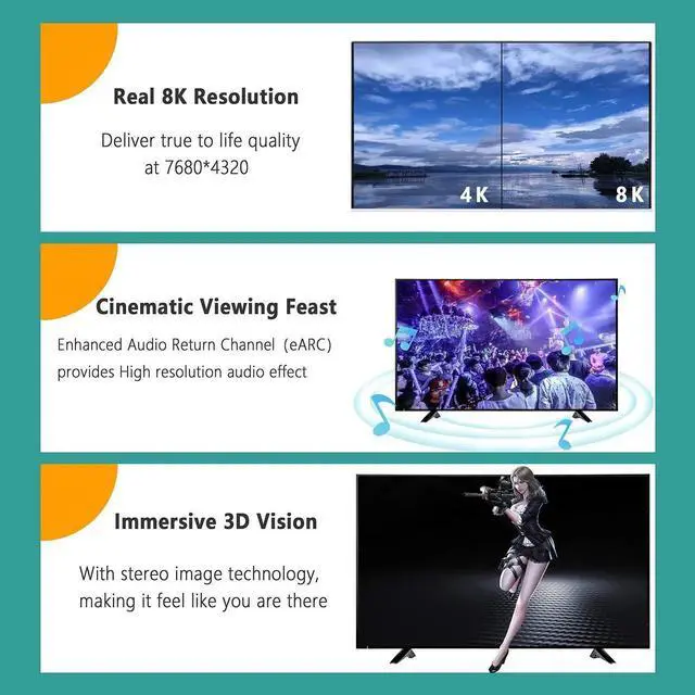 HDMI 2.1 CABLE( 8K 48Gbps) can connect Blu-ray/DVD player, PC, AV receiver, Roku streaming media player, cable box, PlayStation , Xbox, Ultra 4K TV(UHD TV), HDTV, Monitors, Projectors and so on. suitable for home theater, conference, education and gaming and more.
