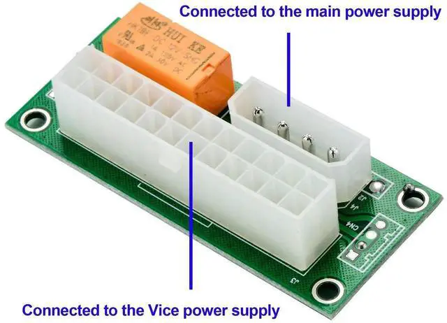 You get better power distribution than just using one power supply and you share the load with having more units. To use, plug a 4 pin Molex connector from the primary power supply and the 24 pin atx connector from the secondary power supply into the unit. When the primary power supply is powered on, the secondary power supply will also turn on.
