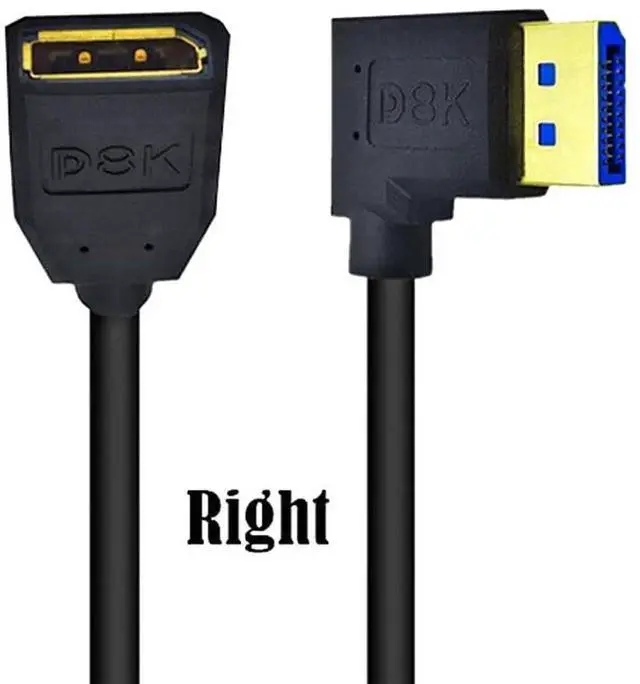 3. Angle support. The 90-degree DP 1.4 version adapter cable can help you solve difficult work scenarios, such as connection in a small space, avoid the bending of the cable connection port to affect the output, and make our right-angle end output easier. Before purchasing, please carefully choose the angle you need to avoid unnecessary trouble.