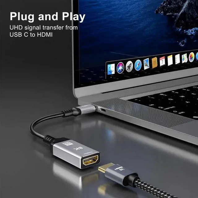 USB Type-C to HDMI Cable supports the newest release computers and smartphones with USB-C or Thunderbolt 3 to 8K@60Hz 4K@30Hz UHD monitors with HDMI.