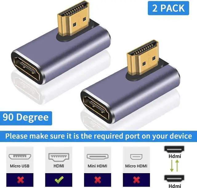 HDMI 90 Degree Adapter: Support 90 degree HDMI interface changing, to avoid bending HDMI cables and relief the strain on HDMI ports, and fit for wall-mounted devices, solving the embarrassment of limited spaces between wall and device.