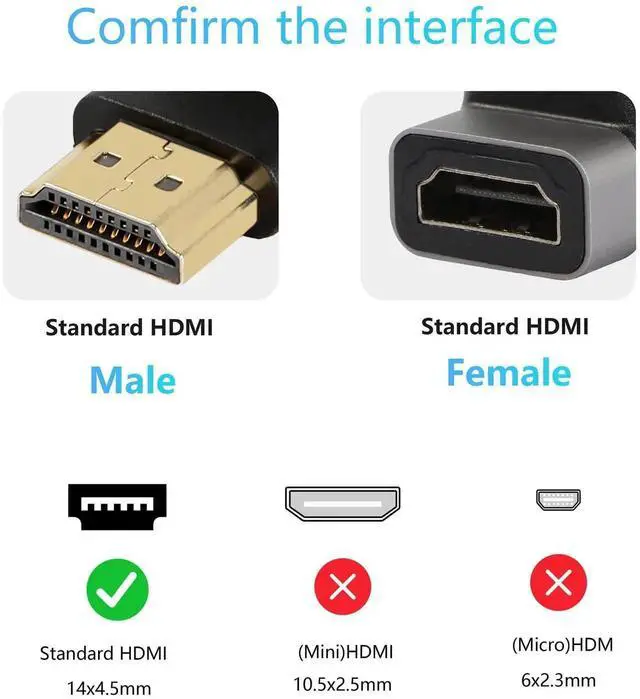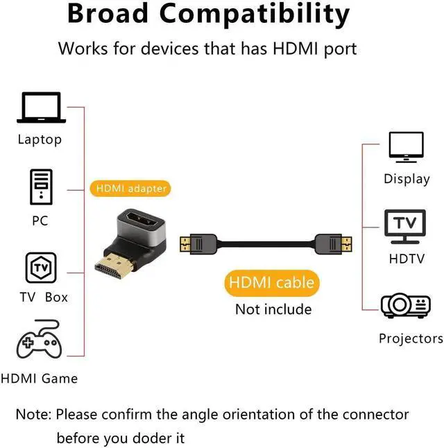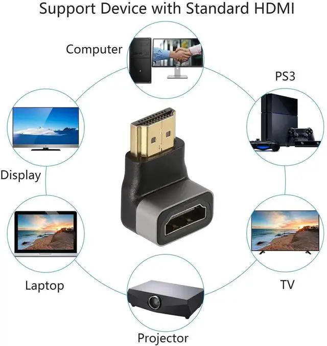 2.Standard HDMI-connector,support 4k@60Hz, these 90degree HDMI-compatible adapters are capable of carrying the increased bandwidth of HDMI-compatible 2.0 at 18 Gbps.