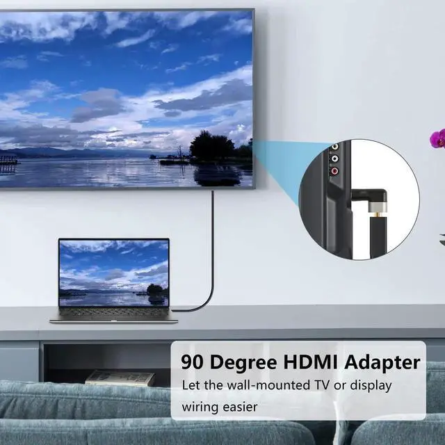 1.Make the HDMI port easier to reach by pointing it upwards or downwards avoid bending HDMI cables and relief the strain on HDMI-compatible ports to increase the lifespan of your device and HDMI-compatible cable.