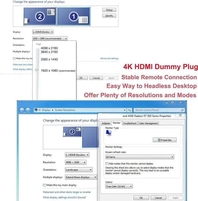 Make Things More Easier: single dummy plug HDMI emulator help you not have to connect a real monitor at all, and still get a virtual screen with its own EDID when using remote management software such as VNC.