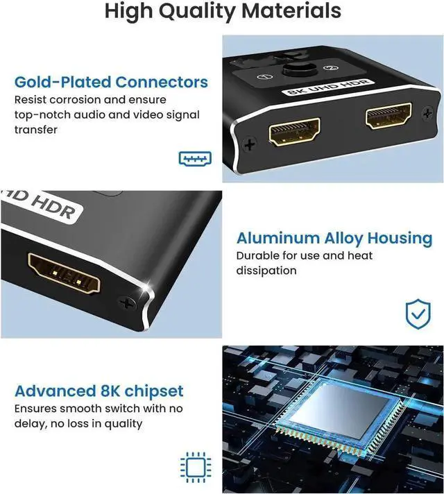 AOMOPROING HDMI 2.1 Switch 8K HDMI Switcher, 4K 120hz HDR Aluminum Bi-Directional Switch Splitter 2 in 1 Out or 1 in 2 Out, Support High Speed 48Gbps 8K@60Hz, for PS5, Xbox Series X , Apple TV,