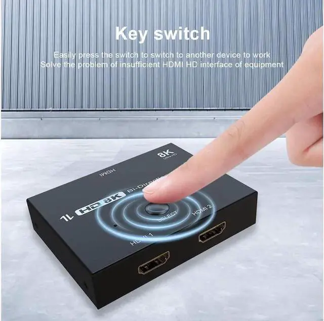 Switcher/Splitter: The HDMI switcher allows you to connect two HDMI sources to one HDMI display (switcher) or connect one HDMI source to switch between two HDMI displays (splitter). An additional HDMI cable is required, but is not included in our HDMI switch package. The length of the HDMI cables connected to both ends of the switch should not exceed 3 meters, otherwise the HDMI display connection may become unstable. ***IMPORTANT: Two monitors cannot be displayed at the same time)