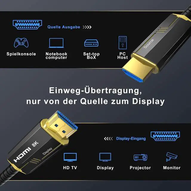 HDMI Fiber Optic Cable High Speed HDMI 2.1 Cable Professionally designed ultra high speed HDMI cable, more stable, more durable, and more rust-resistant, key factor for high-speed transmission. Active high speed hdmi cable especially for home theatre, gaming enthusiasts, audio visual users, large venue system designers, installers, fiber optic cables provide full HDMI signal integrity. 48gbps HDMI Cable supports the full range of uncompressed HDMI 2.1 Specification features, including 4K@120Hz, 8K@60Hz, 8K video with Dynamic HDR, 48Gbps bandwidth. Package contains: 1*Fiber Optic HDMI Cable 65ft