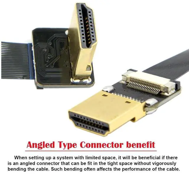 FPV HDMI Type A Male to HDMI Male HDTV FPC Flat Cable Up Angled 90 Degree HDMI Male