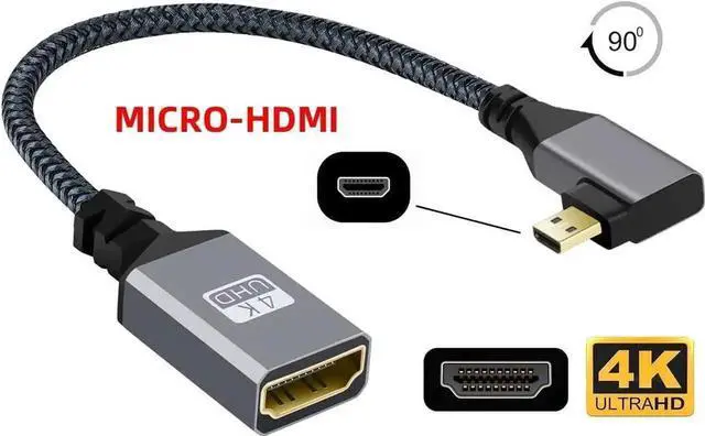 Aomoproing Micro HDMI to HDMI Cable,Micro HDMI 1.4 Male to HDMI Female 4K Extension Cable 90 Degree Right Angled