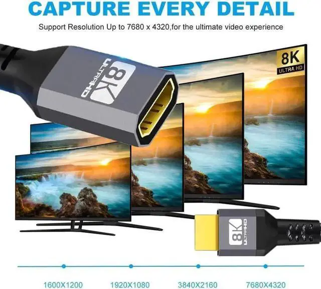 HDMI 2.1 UHD 8K Extension Cable Male to Female Ultra-HD 8K 60hz 4K 120hz Cable 48Gbs with Audio 3D HDMI Cord