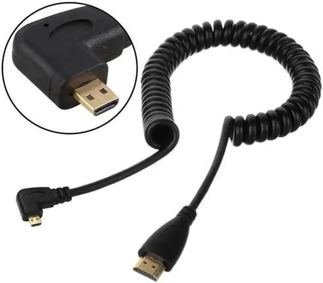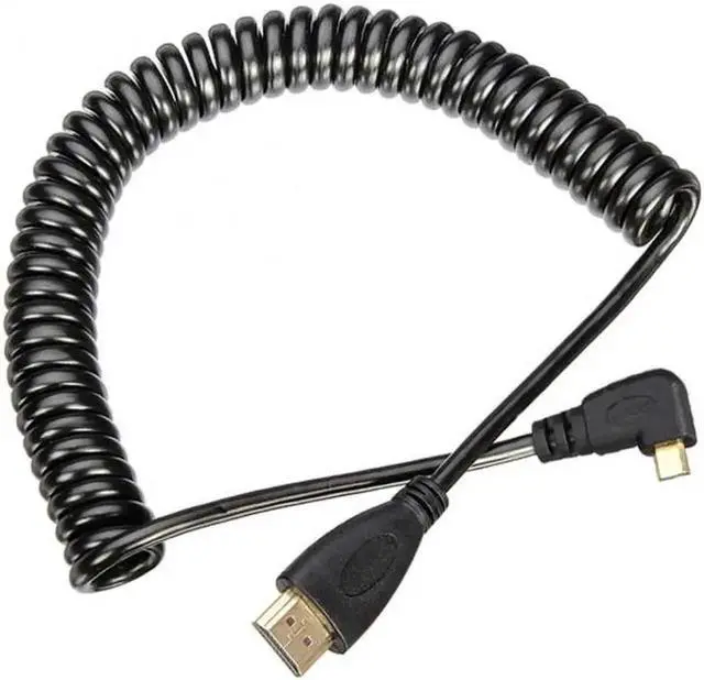 Aomoproing Stretch Left Angled 90 Degree Micro HDMI to HDMI Male HDTV Cable for Cell Phone & Tablet & Camera