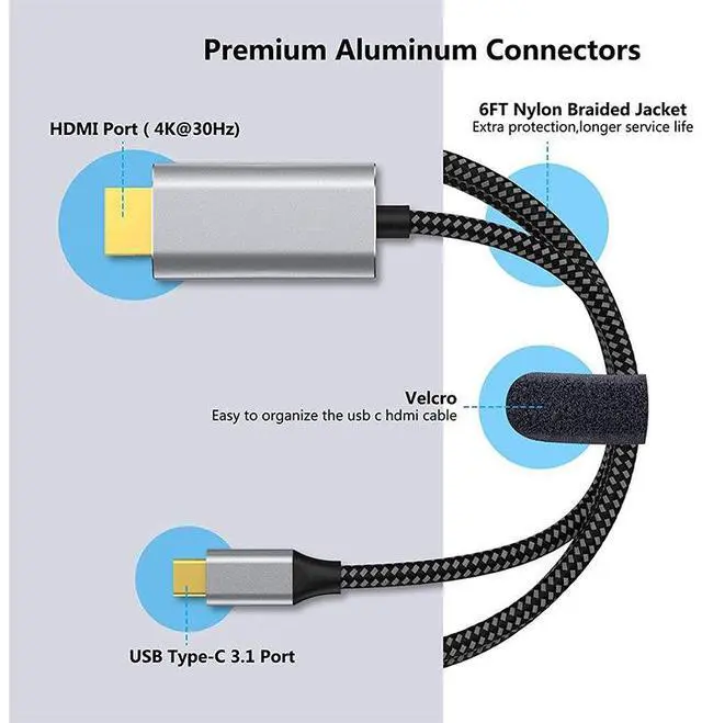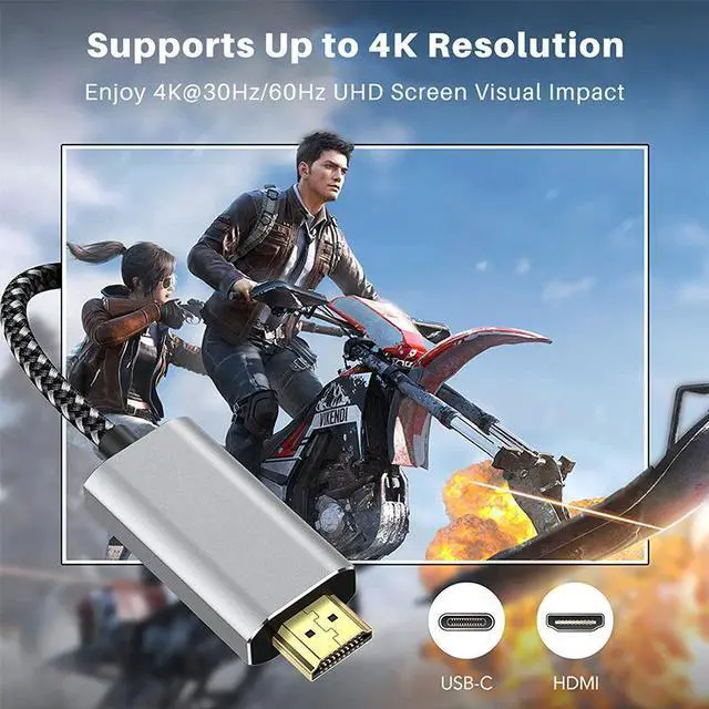 4K Ultra HD Visual Experience & Stable TransmissionAomoproing Type-C to HDMI cable supports 4K@30Hz high-definition resolution and 1080P full HD, delivering crystal-clear images and vivid colors without lag, blurring or flickering. Whether youre streaming movies on TV, giving office presentations on a projector, or gaming on a large screen, it brings immersive visual enjoyment to every scenario.