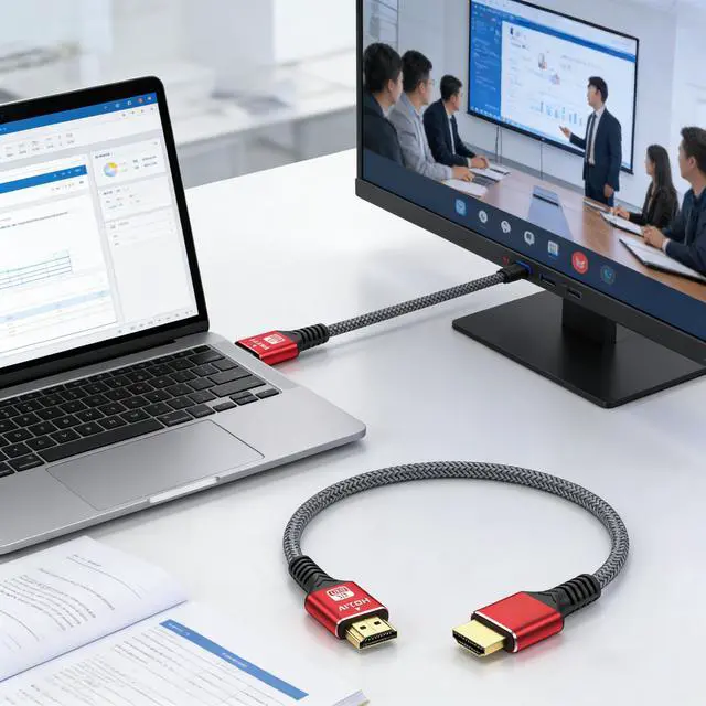 Premium Durability: The nylon-braided outer jacket resists tangles, kinks, and wear, while gold-plated connectors offer corrosion resistance and ensure a stable signal even after 10,000+ insertions. The reinforced strain relief design protects the cable from damage caused by frequent bending.