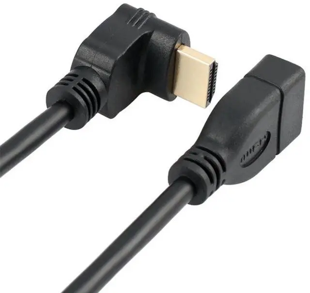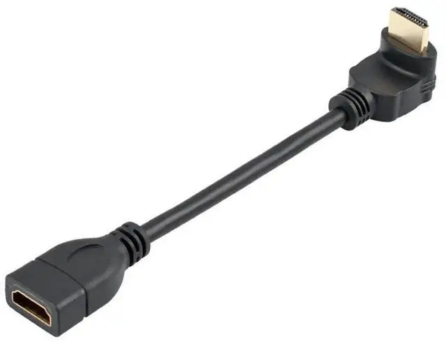 This 0.5-foot high-speed HDMI extension cable features a 90° angled male-to-female design to extend your HDMI connection while saving space. Gold-plated connectors ensure stable, lossless transmission for 4K, 1080P and 3D content. Ideal for wall-mounted TVs, gaming consoles, laptops, monitors and projectors where straight cables wont fit. Plug-and-play, no drivers needed.