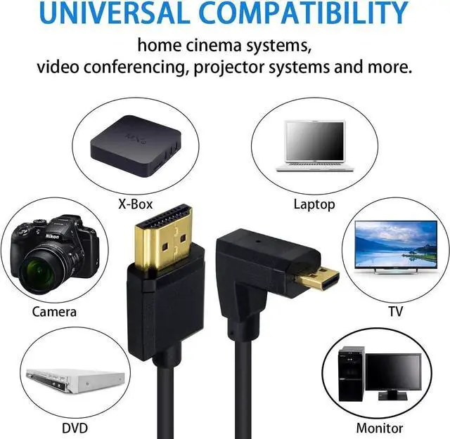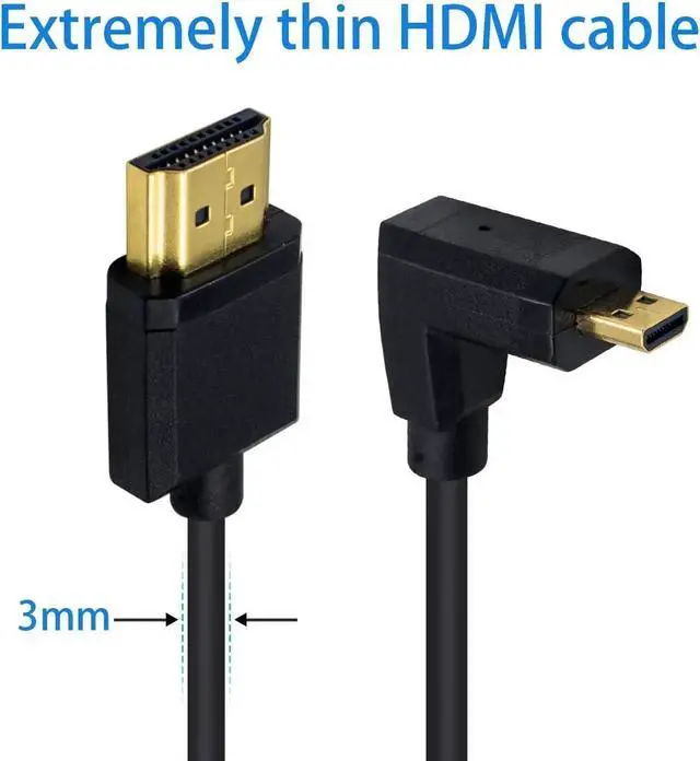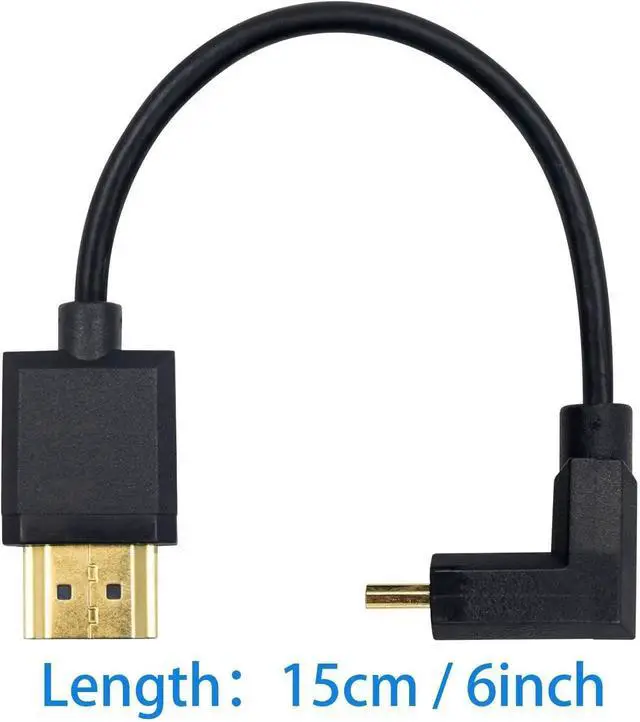 This ultra thin micro HDMI to HDMI cable features a downward angle connector to avoid bending and fit compact spaces. It supports 4K UltraHD, 3D, and Ethernet for high-definition audio and video transmission. The 15cm short cable is ideal for cameras, tablets, Raspberry Pi, and other micro HDMI devices, providing stable performance with minimal clutter.