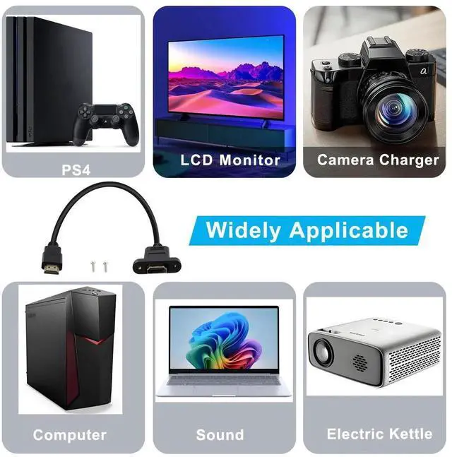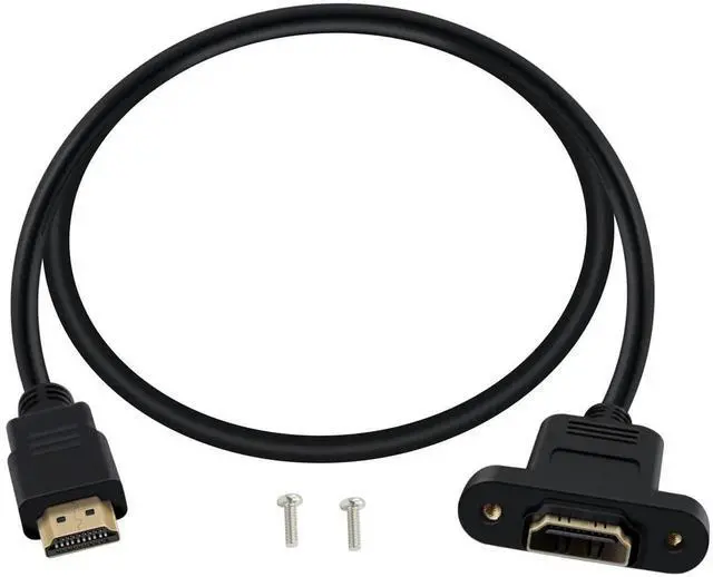 This HDMI male-to-female extension cable comes with a panel-mounted head and screw holes, allowing secure installation on cabinets, wall panels or equipment shells. It supports 4K resolution and stable high-definition transmission, suitable for home theater, game consoles and multimedia devices. Plug-and-play without drivers, providing a neat and reliable connection for your HD devices.