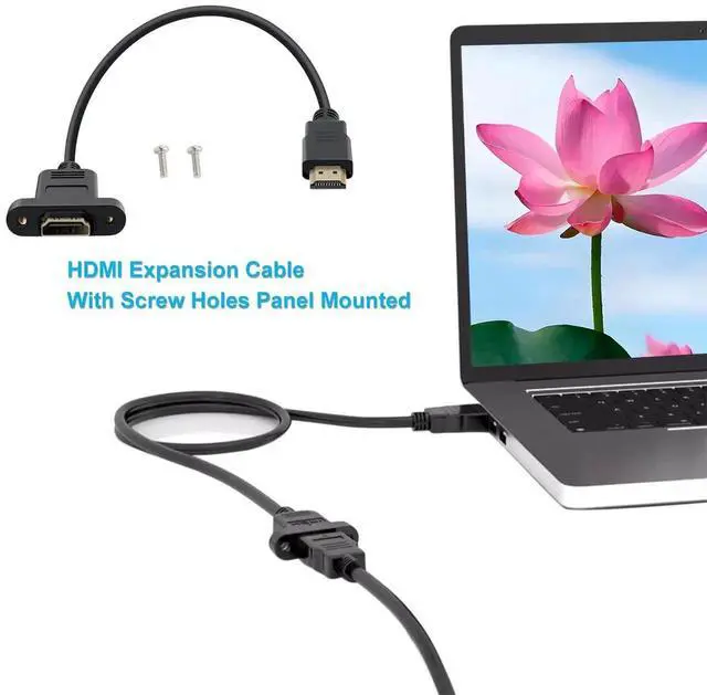 This 0.5m short HDMI extension cable features a panel-mounted design with screw holes, allowing secure installation on walls, panels or equipment enclosures. It supports 4K high-definition video and stable audio transmission, providing reliable signal extension for home theater and gaming devices. The male-to-female connector design makes it easy to extend HDMI ports, suitable for Blu-ray players, HDTVs, Xbox 360, TVs, monitors and other HDMI-enabled devices. Perfect for home theater setups, commercial installations and clean cable management.